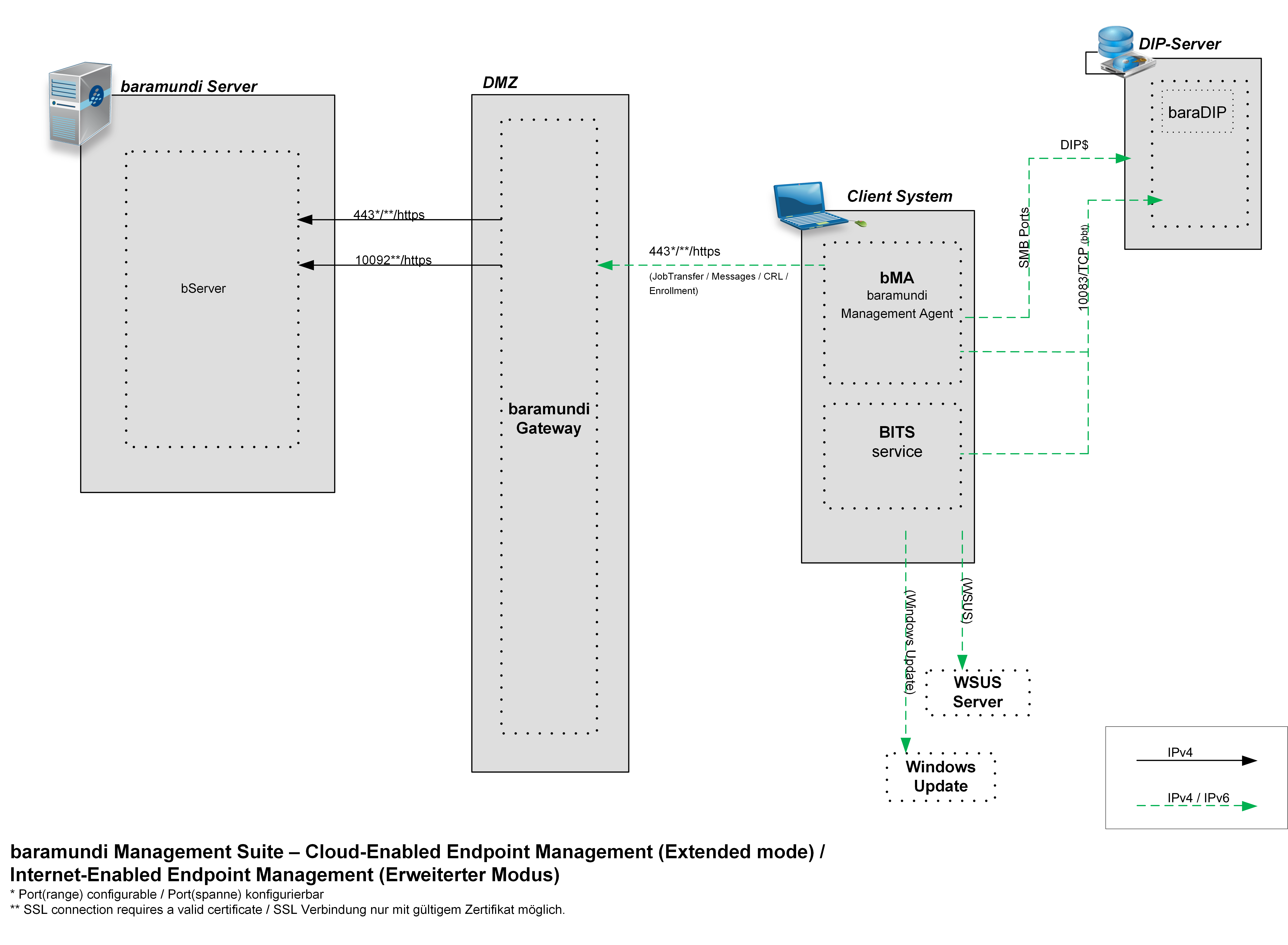 Kommunikationsschema Internet-Enabled Endpoint Management ‑ Erweiterter Modus
