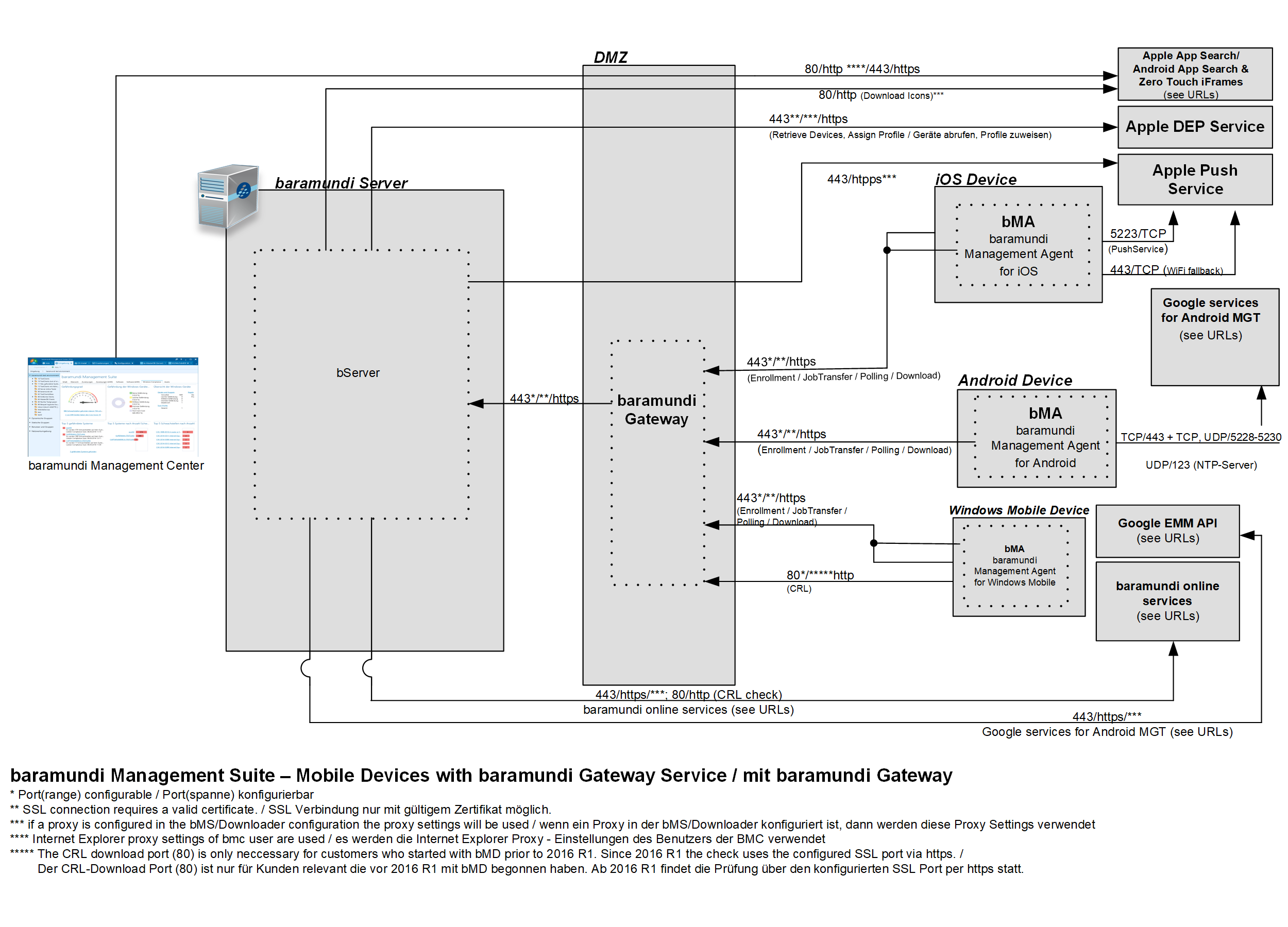Kommunikationsschema baramundi Mobile Devices Gateway