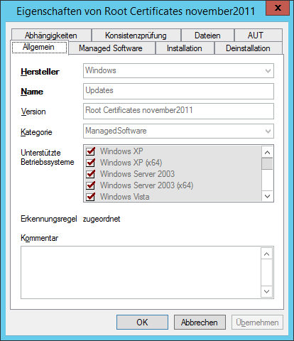 | Erkennungsregel | Der MSW-Produktversion ist eine/keine Softwareerkennungsregel zugewiesen |