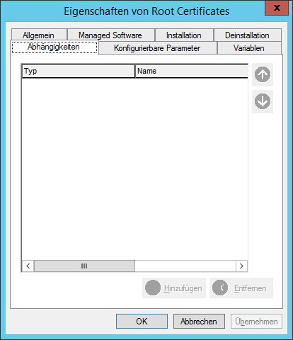 | Typ | Vorher installieren (bei Bedarf): Job installiert gewählte Applikation vorher, falls sie nicht auf dem Gerät vorhanden ist Vorher installieren: Job installiert gewählte Applikation vorher auf dem Gerät Hinweis: Sollte die Applikation bereits vorhanden sein, versucht das System eine Neuinstallation. Ist diese Option deaktiviert, bricht der Job mit Fehler ab. Vorher deinstallieren: Job deinstalliert gewählte Applikation vorher, falls sie auf dem Gerät vorhanden ist Danach installieren: Job installiert gewählte Applikation nach der Installation Hinweis: Sollte die Applikation bereits vorhanden sein, versucht das System eine Neuinstallation. Ist diese Option deaktiviert, bricht der Job mit Fehler ab. Fehler wenn nicht installiert: Ist die Applikation nicht auf dem Gerät installiert, bricht der Job mit Fehler ab Fehler wenn installiert: Ist die Applikation auf dem Gerät installiert, bricht der Job mit Fehler ab |