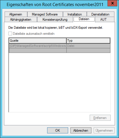 Sehen Sie die Dateien wie Setups oder Skripte ein, die für die Installation und Deinstallation der Produktversion benötigt werden. Diese werden per Netzwerkfreigabe oder bBT (baramundi Background Transfer) an das Gerät übertragen oder in einen bDX-Container aufgenommen.