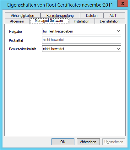 | Benutzerkritikalität | Bewertung der Dringlichkeit für den Anwender; Dieses Feld ist ausschließlich für die interne Dokumentation vorgesehen und hat keine Auswirkung auf das Verhalten oder die Priorisierung von Updates in einem MSW-Job. Eine Deaktivierung oder Ausblendung des Feldes existiert nicht. |