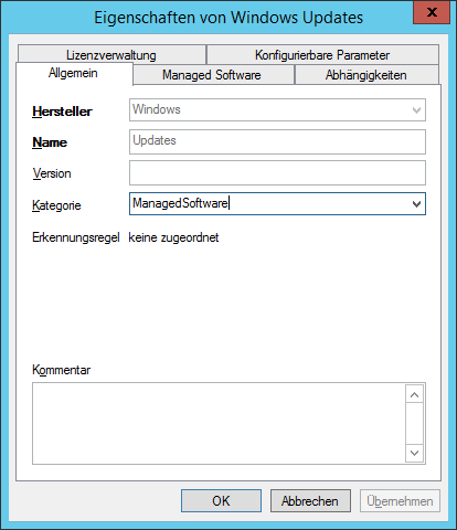 | Erkennungsregel | Dem MSW-Produkt ist eine/keine Softwareerkennungsregel zugewiesen |
