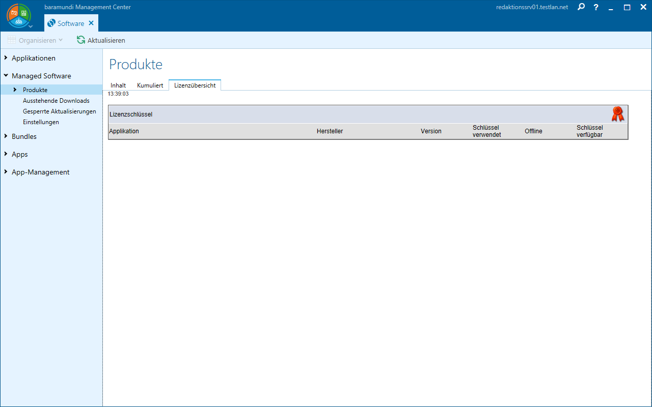 Dieser Knoten zeigt eine Übersicht aller an den Produkten hinterlegten Lizenzen.