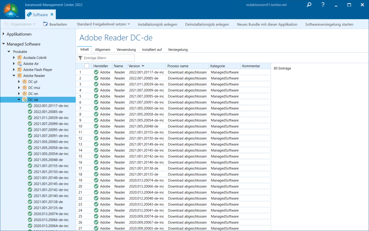 | Installationsjob anlegen | Öffnet einen Dialog zur Erstellung eines Installationsjobs für die Produktlinie |