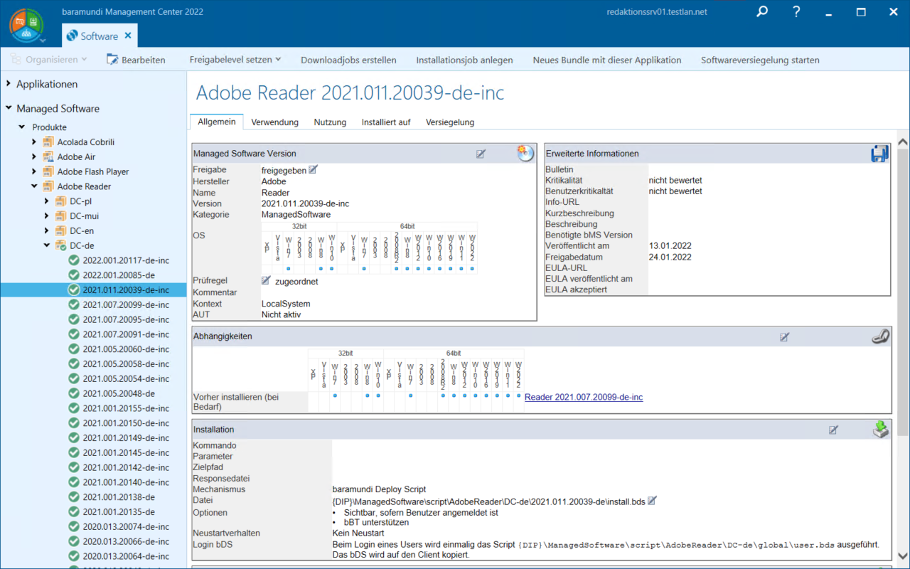 | Installationsjob anlegen | Öffnet einen Dialog zur Erstellung eines Installationsjobs für die Produktversion |
