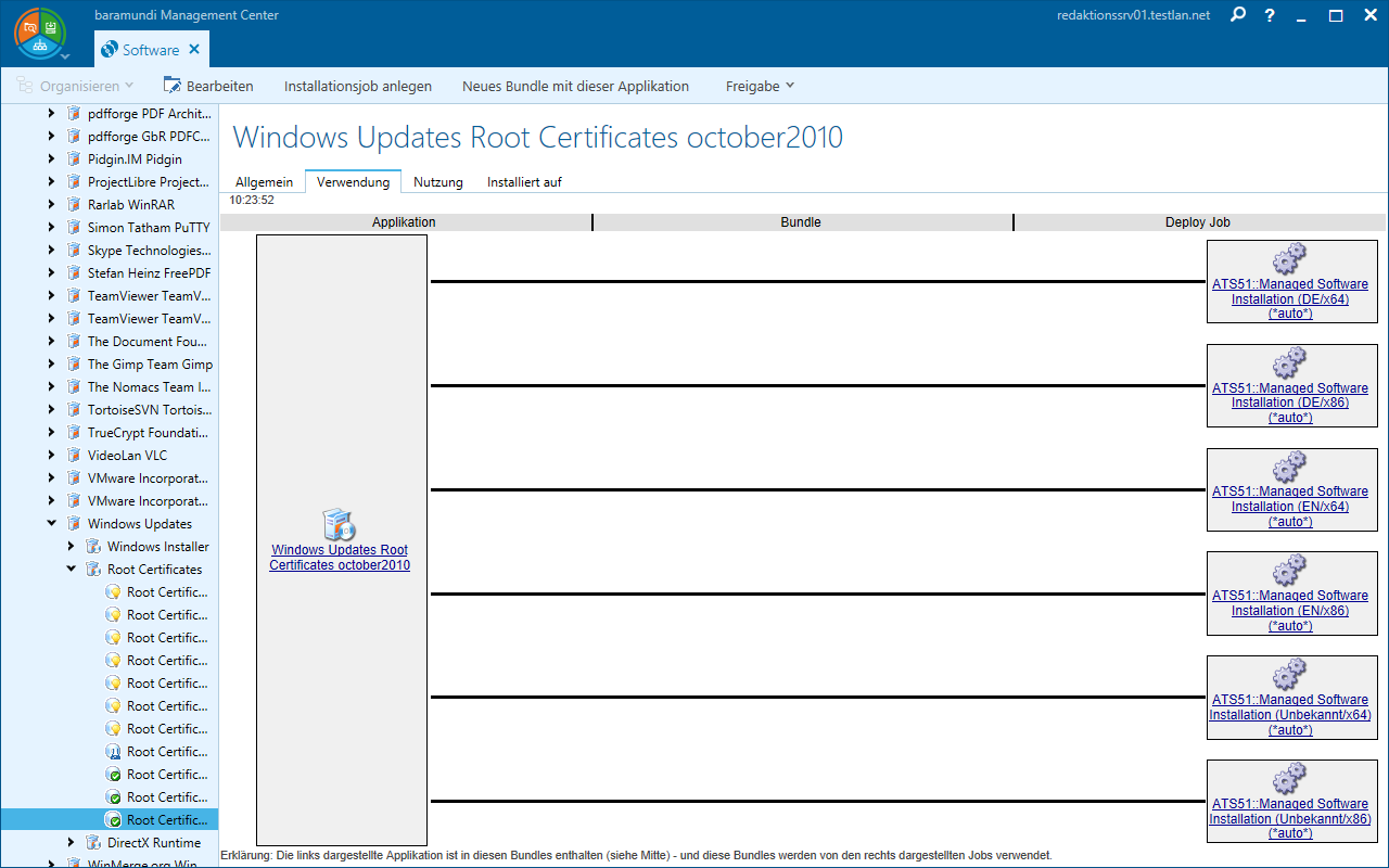 | Deploy Job | Links zu Jobs, in denen die Applikation oder ein zugehöriges Bundle verwendet wird |