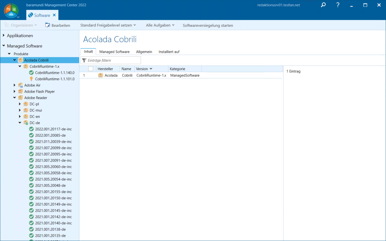 | Softwareversiegelung starten | Startet die Softwareversiegelung für das ausgewählte Produkt |