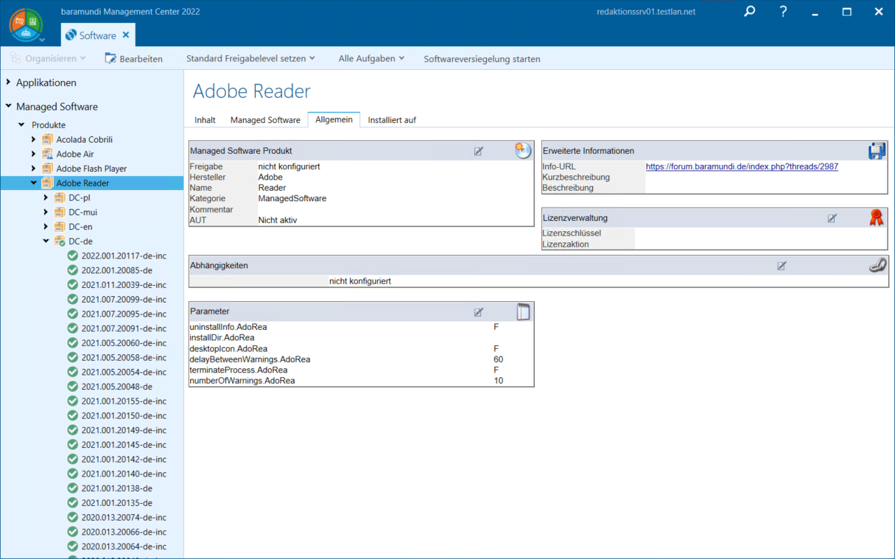 | Freigabe | Für Test freigegeben: Produkt ist für MSW zum Testen freigegeben Freigegeben: Produkt ist freigegeben Freigegeben (nur neuste Version): Setzt die erste Produktversion der entsprechenden Produktlinie auf Freigegeben, die älteren Produktversionen auf Nicht freigegeben Achtung: Das Setzen des Standardfreigabelevels ist für Produkte und Produktlinien, nicht jedoch für Produktversionen möglich. Nicht freigegeben: Produkt ist für MSW nicht freigegeben Nicht konfiguriert: Freigabe ist für das Produkt nicht konfiguriert |