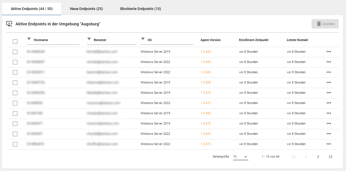 Entsprechend der ausgewählten Umgebung sind die Endpoints dann, je nach ihrem aktuellen Status, in den folgenden Tabs gelistet: