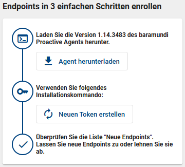Kopieren Sie das neu erstellte Installationskommando und verwenden Sie es, um den baramundi Proactive Agent auf den gewünschten Endpoints zu verteilen und dort zu installieren.