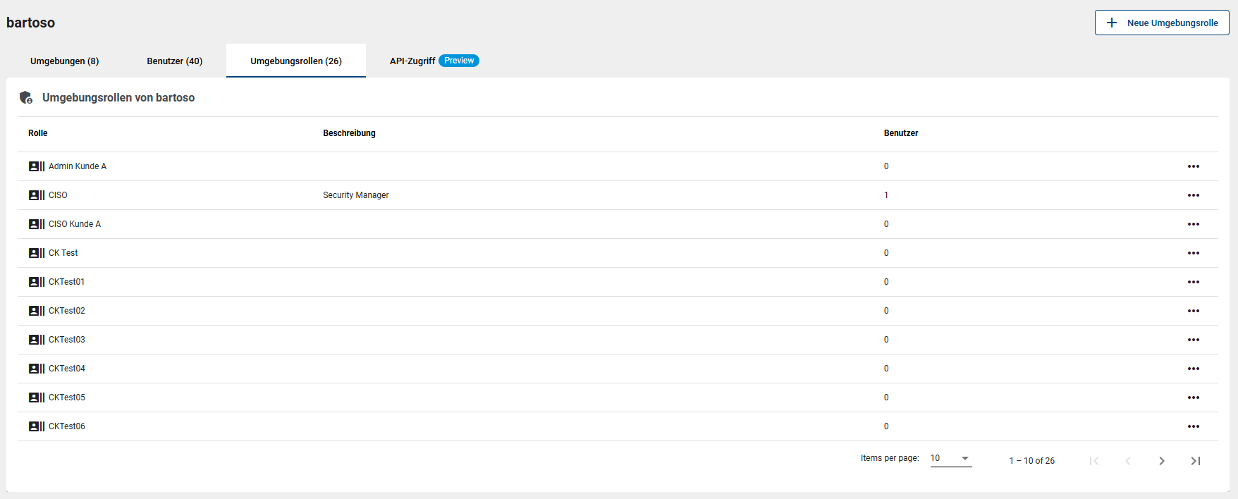Legen Sie nach Bedarf neue Umgebungsrollen an. Vergeben Sie dazu einen Namen für die Rolle sowie (optional, jedoch empfohlen) eine Beschreibung.