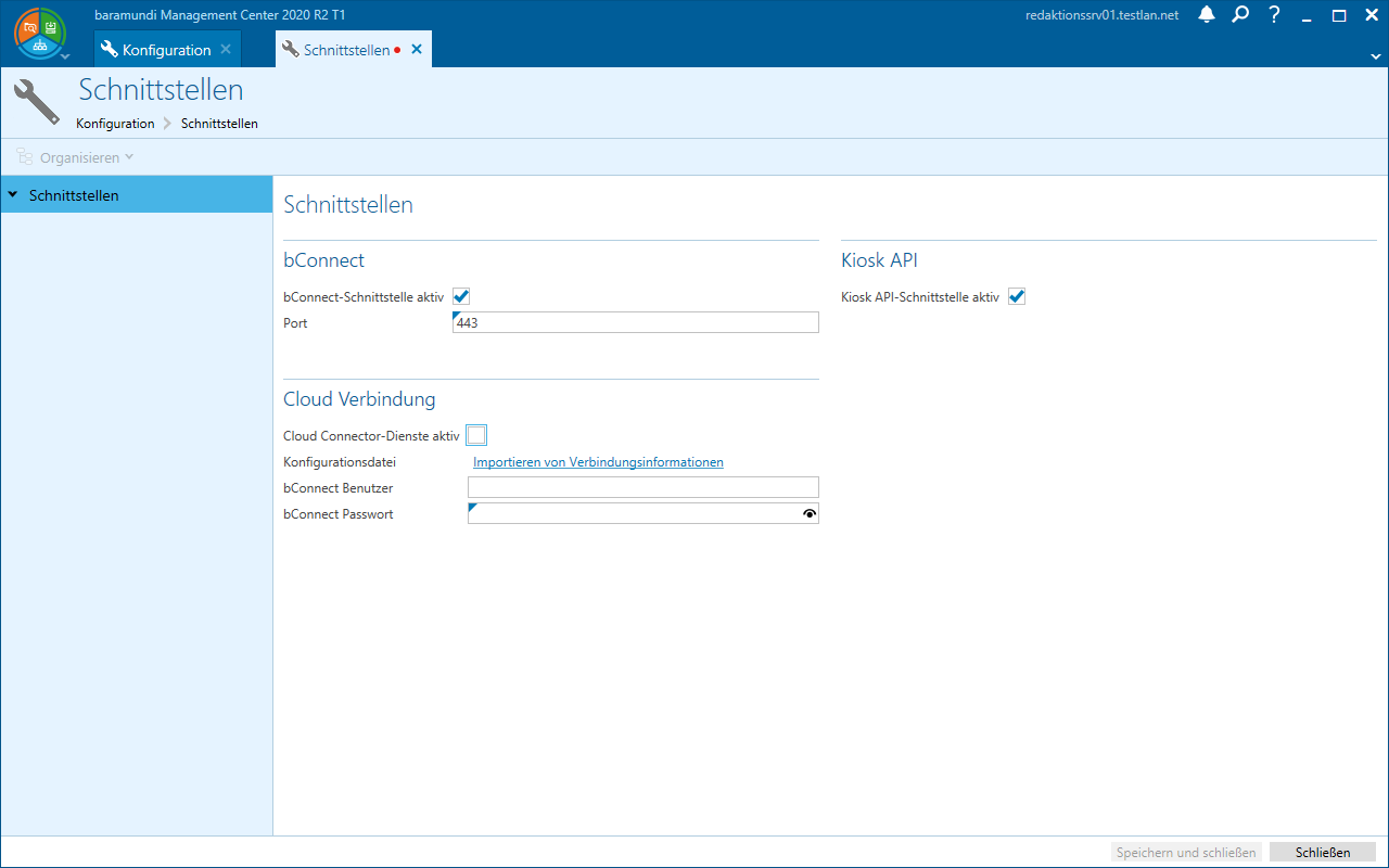 Aktivieren Sie unter bConnect die Schnittstelle. I.a. Regel belassen Sie den Port auf 443 (Standardeinstellung).