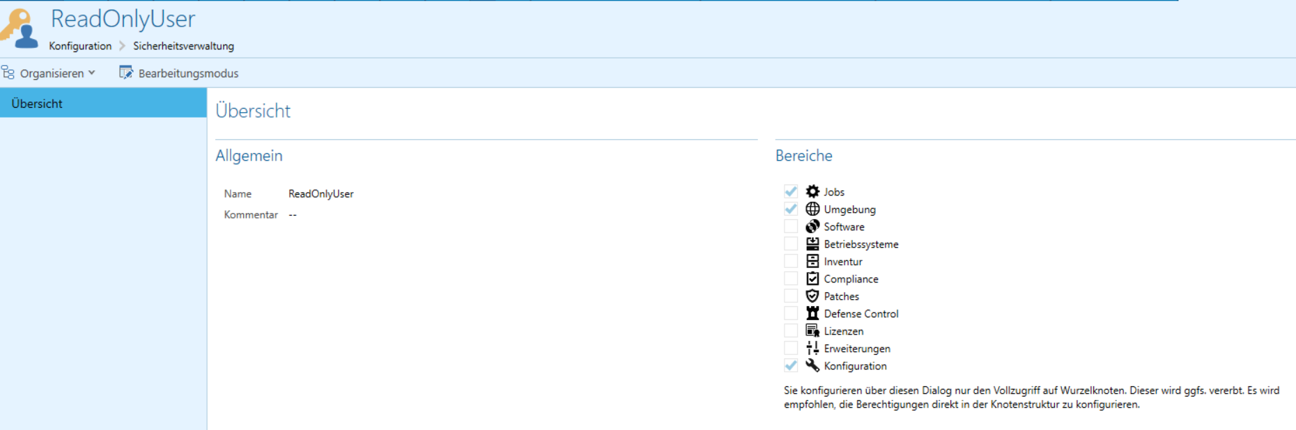 Hinweis: Dazu empfehlen wir einen bConnect-Benutzer anzulegen, der speziell für die bAC-Anwendungen verwendet werden soll. Dieser Benutzer benötigt Leseberechtigungen für Jobs, Umgebung und Konfiguration sowie Modify-Rechte für Konfiguration > Server. Das Modify-Recht können Sie via Rechtsklick im Kontextmenü Konfiguration > Server/Bearbeiten einstellen.
