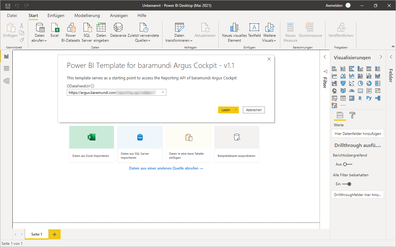 Die ODataFeedUrl ist automatisch richtig hinterlegt; klicken Sie auf Laden.
