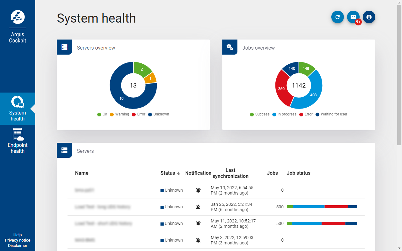 Unter Servers finden Sie alle mit Argus Cockpit verbundenen Server aufgelistet.