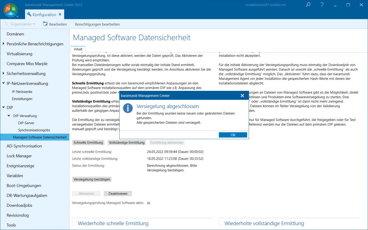 Schnelle / vollständige Ermittlung Hier benötigen Sie Modify-Rechte auf Konfiguration > DIP > Managed Software Datensicherheit.
