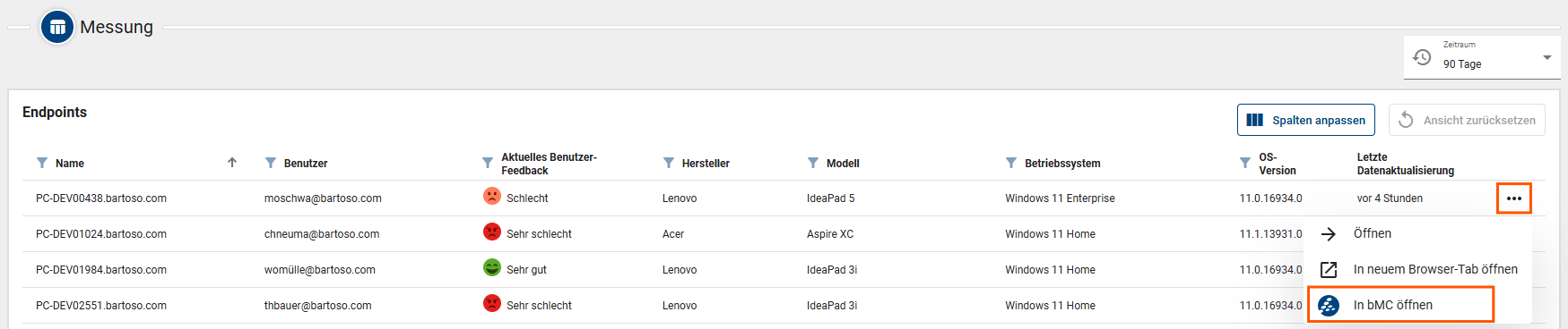 Sofern auf einem Endpoint auch ein baramundi Management Agent (bMA) installiert ist, können Sie diesen aus baramundi perform2work heraus direkt im bMC öffnen.