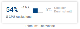 Die Übersichtskachel zeigt Ihnen die durchschnittliche CPU-Auslastung der gewählten Endpoints. Diese wird verglichen mit dem globalen Durchschnitt, also der durchschnittlichen CPU-Auslastung aller in baramundi perform2work erfassten Umgebungen. Der Trend ist dargestellt mit der kleinen Zahl (s. Tooltip).